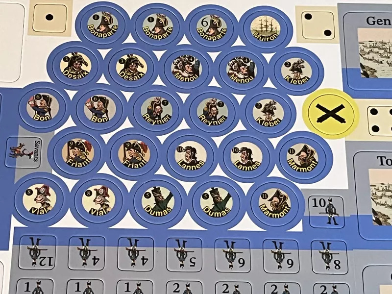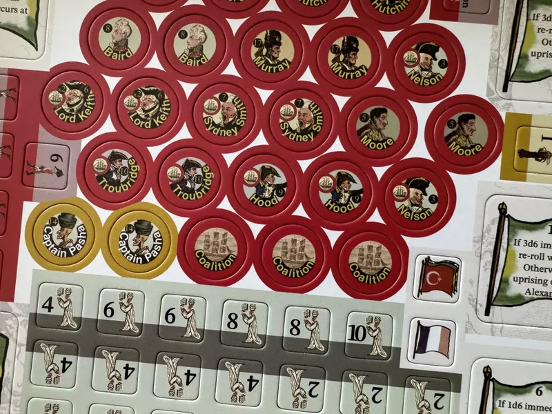 - des tableaux de combat et d'événements montés sur une carte épaisse