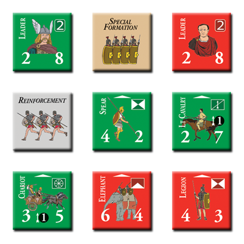 Chaque hexagone sur la carte représente 100 à 200 mètres, selon la bataille. Chaque tour de jeu représente 15 à 45 minutes, selon l'intensité de l'action. Les unités représentent trois à cinq cohortes romaines, leurs équivalents ou des groupes d'irréguliers (1 000 à 3 000 hommes, selon l'époque et l'efficacité de l'armée). Les chefs représentent de grands commandants, des chefs de guerre ou l'état-major d'une légion ou d'une autre formation supérieure.