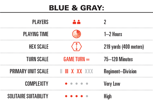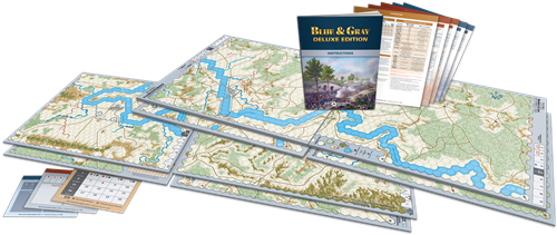 Blue & Gray Deluxe Edition comprend les huit jeux originaux des Quadrigames SPI Blue & Gray I & II. Les batailles représentées sont parmi les plus importantes de la guerre civile américaine : Shiloh, Antietam, Fredericksburg, Chancellorsville (Hooker & Lee), Gettysburg (Cemetery Hill), Chickamauga, Chattanooga et la bataille de Wilderness.
