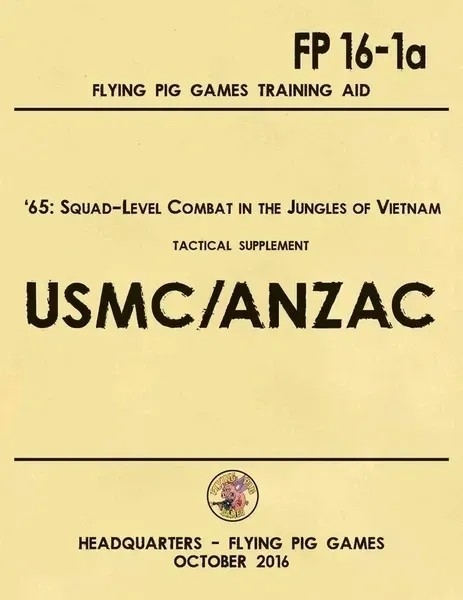 Cette extension USMC et ANZAC pour '65 Squad Level Combat in Vietnam comprend deux planches de pions complètes représentant les Marines américains et l'ANZAC, notamment des sections de fusiliers, des héros et des véhicules blindés tels que l'Ontos et le Centurion, ainsi que huit scénarios les mettant en scène (quatre pour les Marines et quatre pour l'ANZAC).