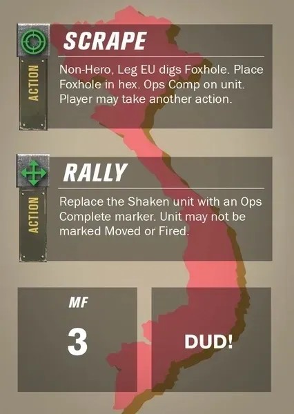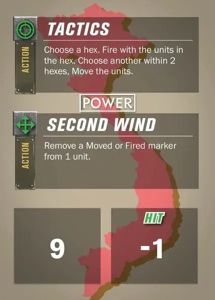 Ces cartes viennent compléter le jeu standard avec des capacités propres aux forces NVA/VC ou américaines.