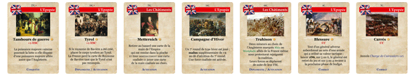 Chaque camp possède son propre jeu de cartes divisé en deux périodes : l'Epopée et les Châtiments.