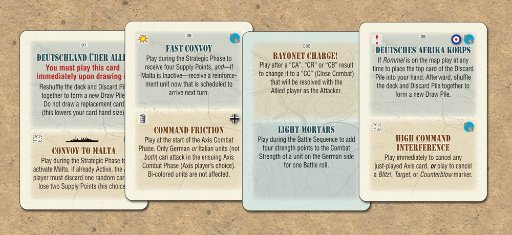 The looming Malta factor is accounted for most assiduously. While abstracted into many aspects of the game, players must always be mindful of Malta being made active (helping the Allies) or inactive (assisting the Axis). The Italian forces have their rightful place in the story unfolding on the game board, and the remarkable paucity of units turns every counter and hex into the kind of wargaming puzzle reminiscent of the glory days of those great contests from the Avalon Hill General magazine.
