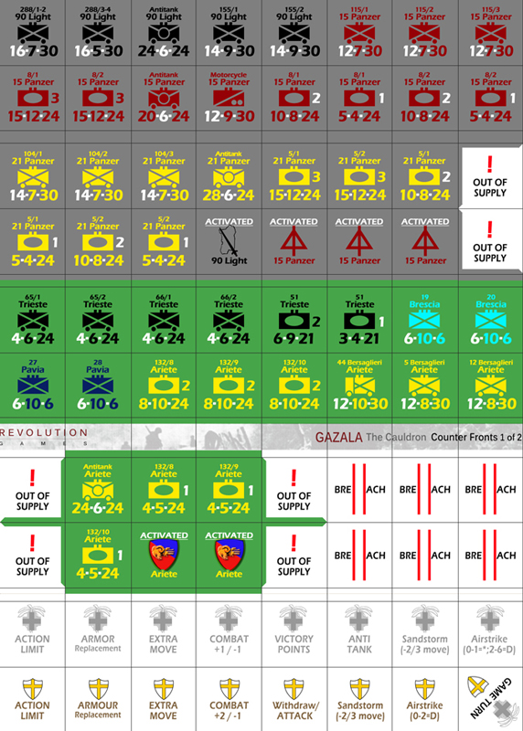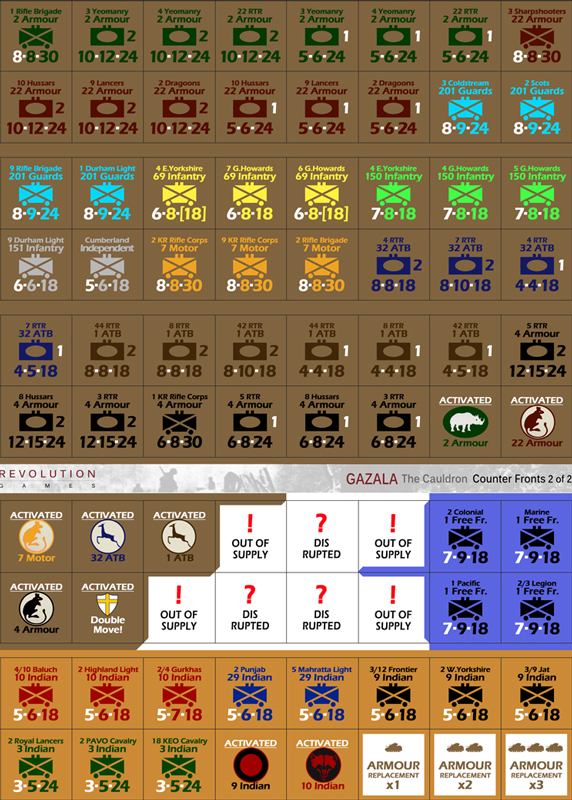 Gazala: The Cauldron simulates the mobile portions of the battle of Gazala south of Tobruk between May 27 and June 14 1942. An Axis attack was met by a furious Allied counter-attack which then developed into a grinding battle of attrition and maneuver that finally ended in massive Axis victory.