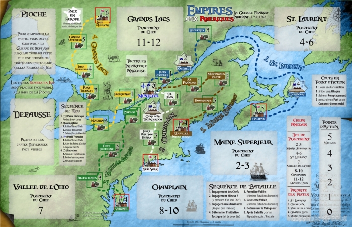 La milice de Montréal et les indiens Algonquins arrêteront-ils les habits rouges de Braddock avant qu’ils ne parviennent à Fort Duquesne ? Vos troupes de Marines arrêteront-elles les Rangers de Roger à Fort Ticonderoga ? La Royal Navy descendra-t’elle la rivière Saint Laurent pour soutenir les opérations contre Québec ? Les intrigues de cours de Versailles parviendront-elles à contrecarrer les machinations de William Pitt (l’Ancien) ?