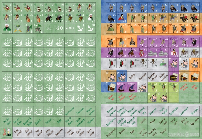 "Au Nom d'Allah" est un jeu en solitaire simulant l'expansion musulmane de 632 ap. JC, la mort de Mahomet, à 732 ap. JC la défaite de Poitiers.