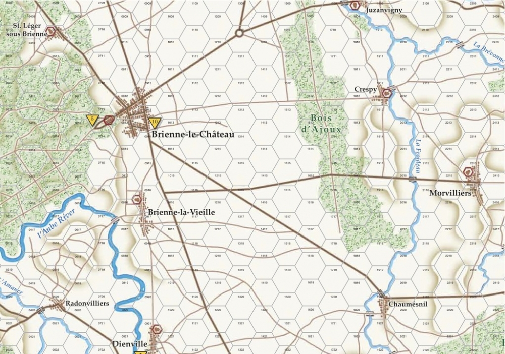 La Patrie en Danger contains five battles from the opening phase of the Campaign in France. Napoleon has just arrived at the front. At their first encounter the French surprised Blücher's Prussians and Russians during a snowstorm. The Battle of Brienne was a short-lived success, however, for just two days later the Prussians triumphed at La Rothière and wrote-off the enemy as a spent force, advancing hell-for-leather across the Marne and onto the highway to Paris. Ten days later Napoleon seized his opportunity when Marshal Vörwarts allowed his advancing columns to get dispersed and defeated in detail, in rapid succession in three short sharp combats.
