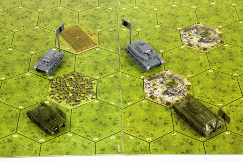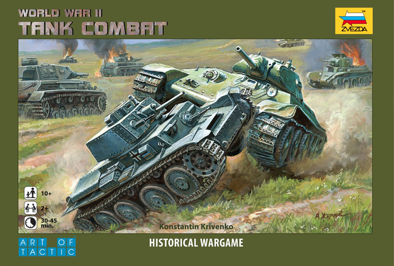 Tank Combat comes complete with six model tanks (in 1/100 scale), four double-sided gameboards, terrain tiles, game cards, player aids, ten dice and two water-based markers. The rulebook includes only those Art of Tactic rules you need to fight battles using only tank units, making Tank Combat the perfect way for new players to experience the excitement of the Art of Tactic.